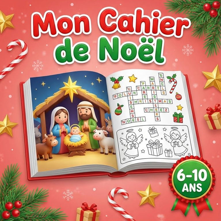 Téléchargez gratuitement notre cahier de coloriage spécial Noël avec des activités amusantes pour les enfants autour de la nativité et des fêtes de fin d'année.